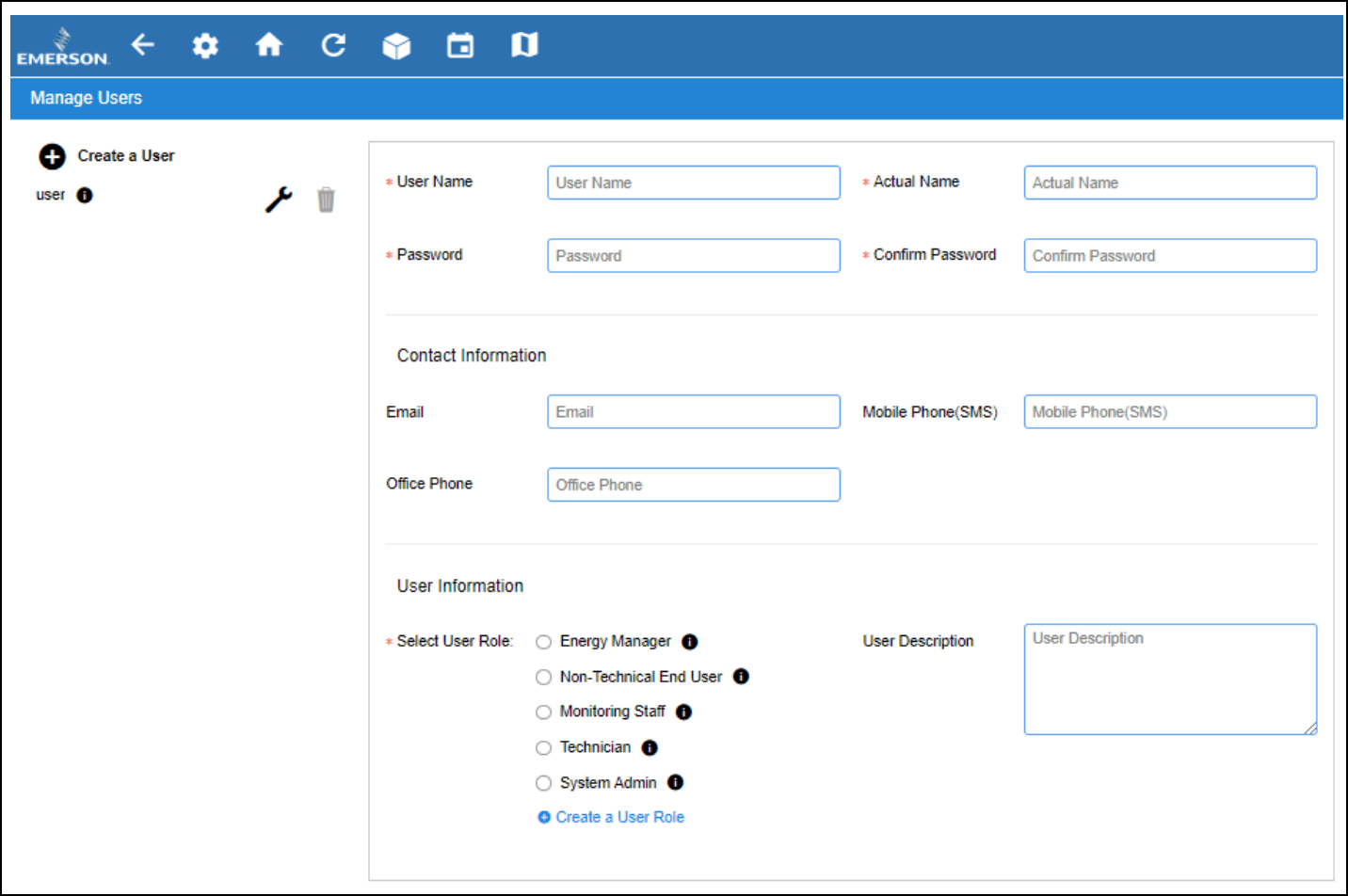 - Click the plus sign to Create a User (or edit an existing one).